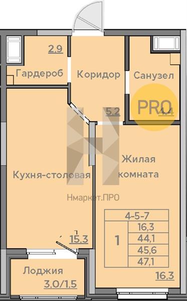 | Общая площадь: | 45.60 м2 |