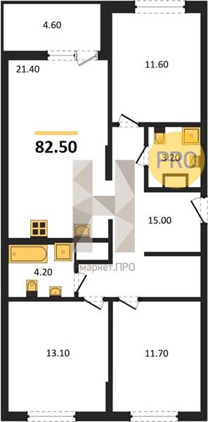 Квартира: 3 к 82,50 кв.м., 6 этаж в комплексе Береговой, 1 очередь, корп.1.4-1.6, сдача: 1кв. , этажей: 24, адрес Екатеринбург г., Щербакова ул., , Застройщик: Талан.