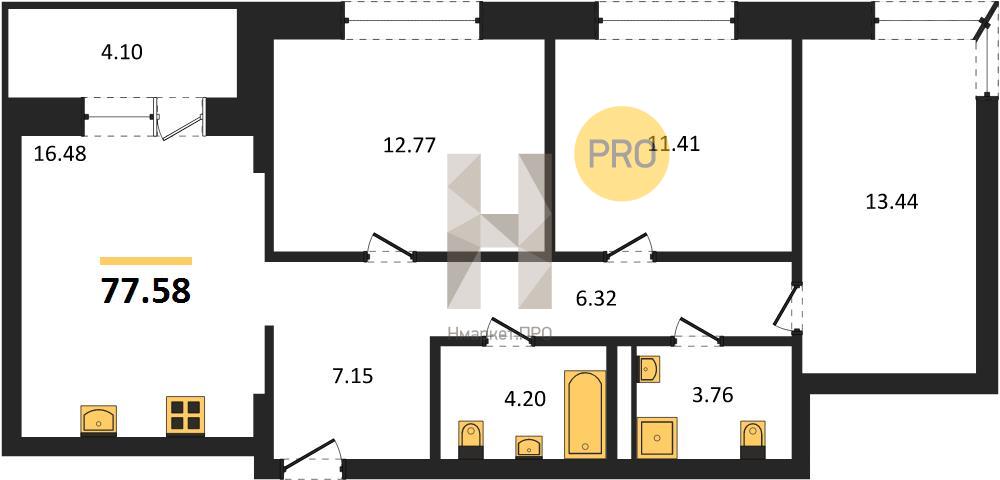 Квартира: 3 к 77,58 кв.м., 2 этаж в комплексе Ривер Парк 3, 3 очередь, корп.2, сдача: 2кв. , этажей: 24, адрес Екатеринбург г., Щербакова ул., , Застройщик: Призвание.