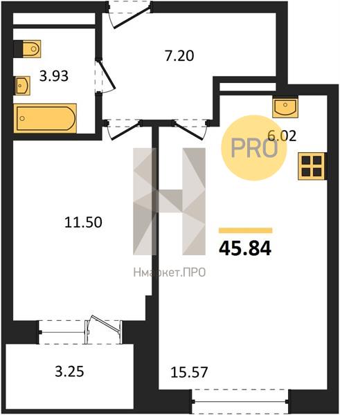 | Общая площадь: | 45.84 м2 |