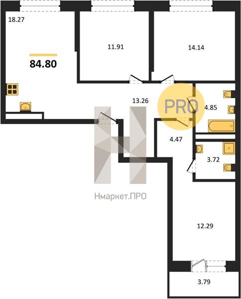 Квартира: 3 к 84,80 кв.м., 1 этаж в комплексе Ривер Парк 3, 3 очередь, корп.1, сдача: 1кв. , этажей: 24, адрес Екатеринбург г., Щербакова ул., д. 1, Застройщик: Призвание.