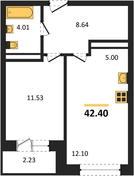 | Общая площадь: | 42.40 м2 |