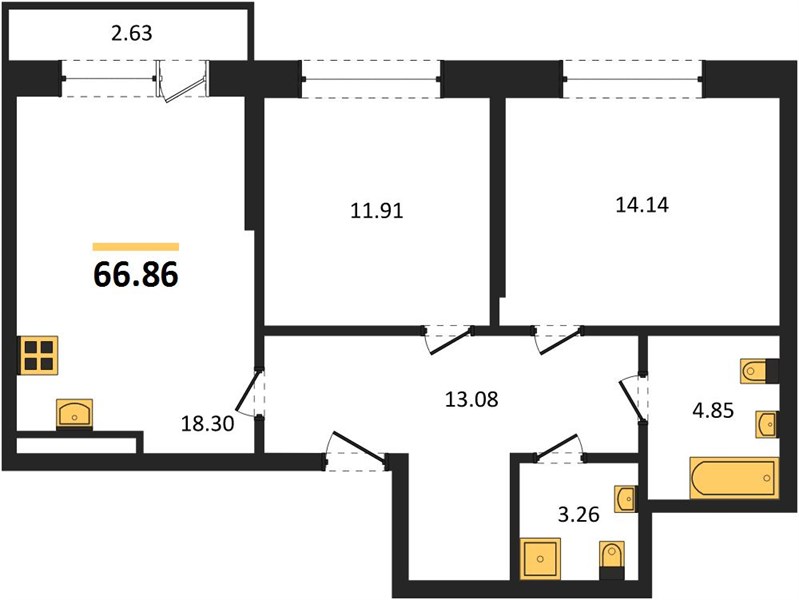 Квартира: 2 к 66,86 кв.м., 15 этаж в комплексе Ривер Парк 3, 3 очередь, корп.1, сдача: 1кв. , этажей: 24, адрес Екатеринбург г., Щербакова ул., д. 1, Застройщик: Призвание.
