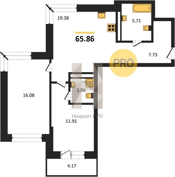 Квартира: 2 к 65,86 кв.м., 21 этаж в комплексе Ривер Парк 3, 3 очередь, корп.1, сдача: 1кв. , этажей: 24, адрес Екатеринбург г., Щербакова ул., д. 1, Застройщик: Призвание.