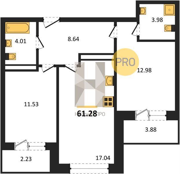 | Общая площадь: | 61.28 м2 |