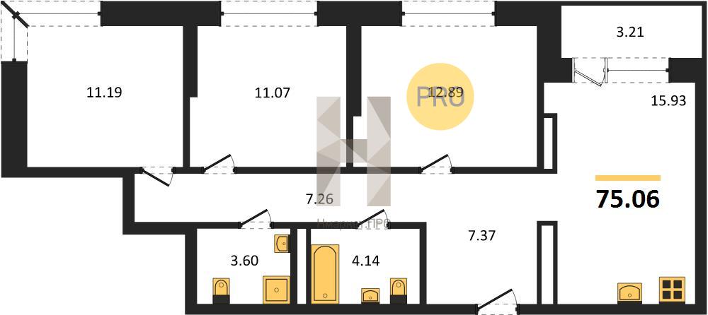 Квартира: 3 к 75,06 кв.м., 24 этаж в комплексе Ривер Парк 3, 3 очередь, корп.1, сдача: 1кв. , этажей: 24, адрес Екатеринбург г., Щербакова ул., д. 1, Застройщик: Призвание.