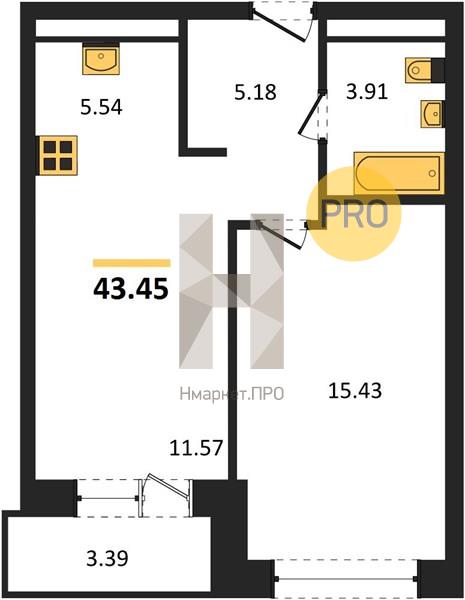 Квартира: 1 к 43,45 кв.м., 7 этаж в комплексе Ривер Парк 3, 3 очередь, корп.1, сдача: 1кв. , этажей: 24, адрес Екатеринбург г., Щербакова ул., д. 1, Застройщик: Призвание.