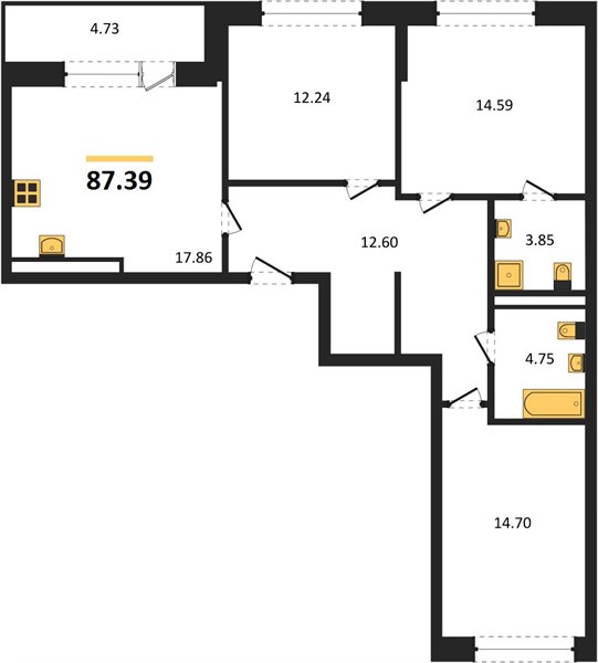 | Общая площадь: | 87.39 м2 |