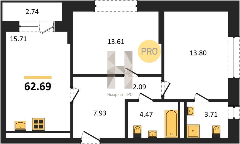 Квартира: 2 к 62,69 кв.м., 2 этаж в комплексе Ривер Парк 3, 3 очередь, корп.1, сдача: 1кв. , этажей: 24, адрес Екатеринбург г., Щербакова ул., д. 1, Застройщик: Призвание.