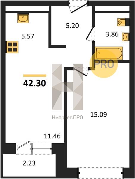Квартира: 1 к 42,30 кв.м., 4 этаж в комплексе Ривер Парк 3, 3 очередь, корп.1, сдача: 1кв. , этажей: 24, адрес Екатеринбург г., Щербакова ул., д. 1, Застройщик: Призвание.