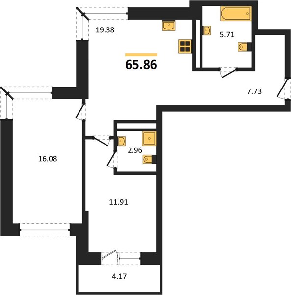 Квартира: 2 к 65,86 кв.м., 5 этаж в комплексе Ривер Парк 3, 3 очередь, корп.1, сдача: 1кв. , этажей: 24, адрес Екатеринбург г., Щербакова ул., д. 1, Застройщик: Призвание.