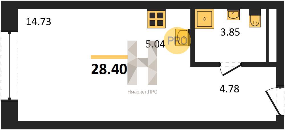 Студия: 28,40 кв.м., 14 этаж в комплексе Ривер Парк 3, 3 очередь, корп.1, сдача: 1кв. , этажей: 24, адрес Екатеринбург г., Щербакова ул., д. 1, Застройщик: Призвание.