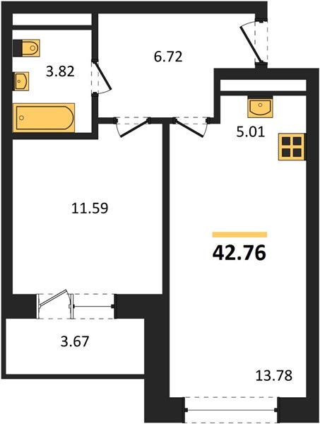| Общая площадь: | 42.76 м2 |