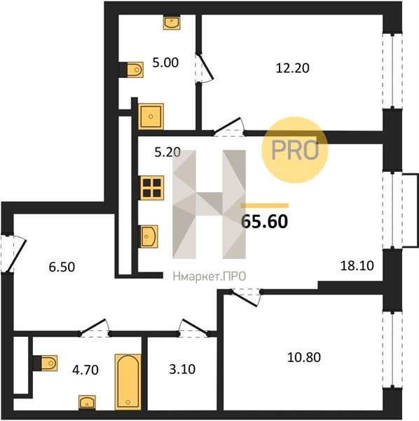 | Общая площадь: | 65.60 м2 |