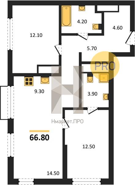 | Общая площадь: | 66.80 м2 |
