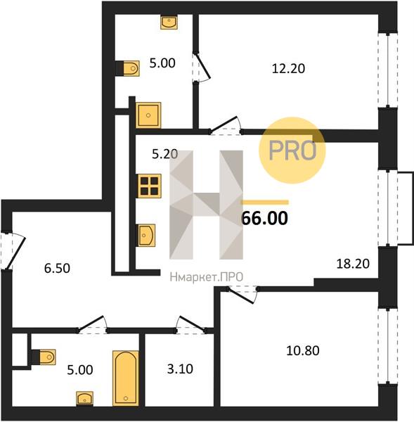 | Общая площадь: | 66.00 м2 |