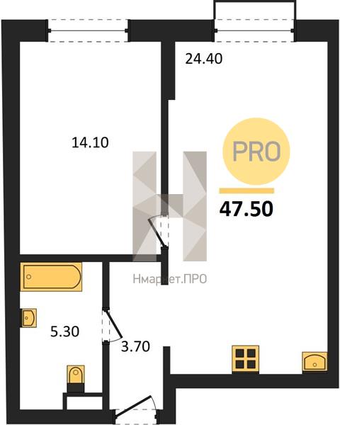 Квартира: 1 к 47,50 кв.м., 24 этаж в комплексе Парк Столиц, 5 очередь, корп.Сингапур, сдача: 4кв. , этажей: 29, адрес Екатеринбург г., Щорса ул., , Застройщик: ATLAS Development.