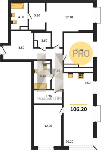 | Общая площадь: | 106.20 м2 |