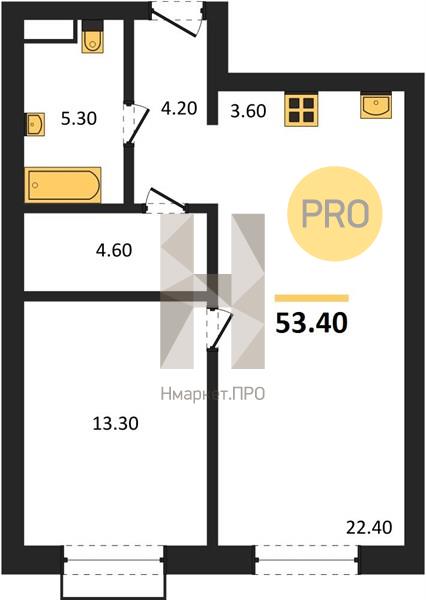 | Общая площадь: | 53.40 м2 |