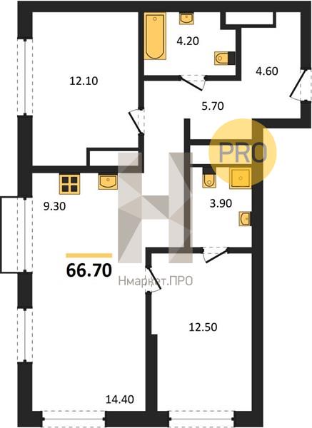 | Общая площадь: | 66.70 м2 |