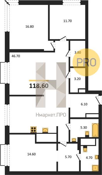 | Общая площадь: | 118.60 м2 |