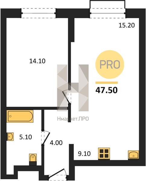 Квартира: 1 к 47,50 кв.м., 20 этаж в комплексе Парк Столиц, 5 очередь, корп.Нью-Йорк, сдача: 4кв. , этажей: 29, адрес Екатеринбург г., Щорса ул., , Застройщик: ATLAS Development.
