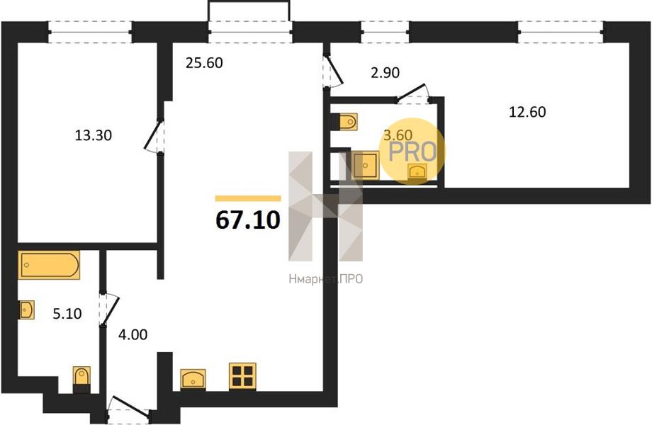 Квартира: 2 к 67,10 кв.м., 22 этаж в комплексе Парк Столиц, 5 очередь, корп.Нью-Йорк, сдача: 4кв. , этажей: 29, адрес Екатеринбург г., Щорса ул., , Застройщик: ATLAS Development.