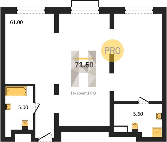 | Общая площадь: | 71.60 м2 |