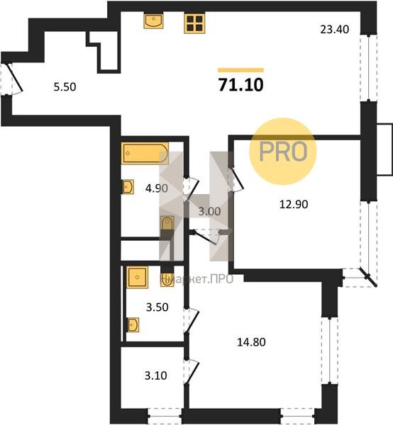 Квартира: 2 к 71,10 кв.м., 7 этаж в комплексе Парк Столиц, 5 очередь, корп.Нью-Йорк, сдача: 4кв. , этажей: 29, адрес Екатеринбург г., Щорса ул., , Застройщик: ATLAS Development.