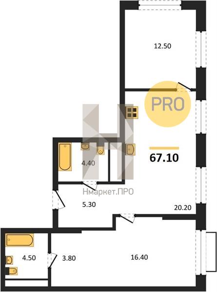 Квартира: 2 к 67,10 кв.м., 19 этаж в комплексе Ауро, 1 очередь, корп.2, сдача: 2кв. , этажей: 19, адрес Екатеринбург г., Шатурская ул., , Застройщик: ATLAS Development.