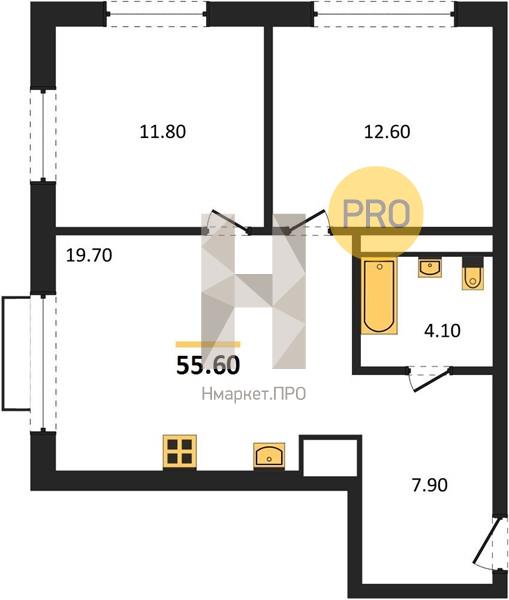 | Общая площадь: | 55.60 м2 |