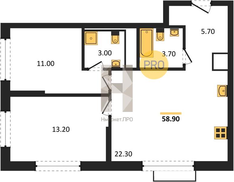Квартира: 2 к 58,50 кв.м., 9 этаж в комплексе Ауро, 1 очередь, корп.2, сдача: 2кв. , этажей: 19, адрес Екатеринбург г., Шатурская ул., , Застройщик: ATLAS Development.