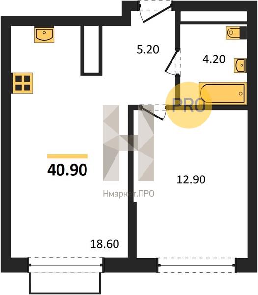 | Общая площадь: | 40.90 м2 |