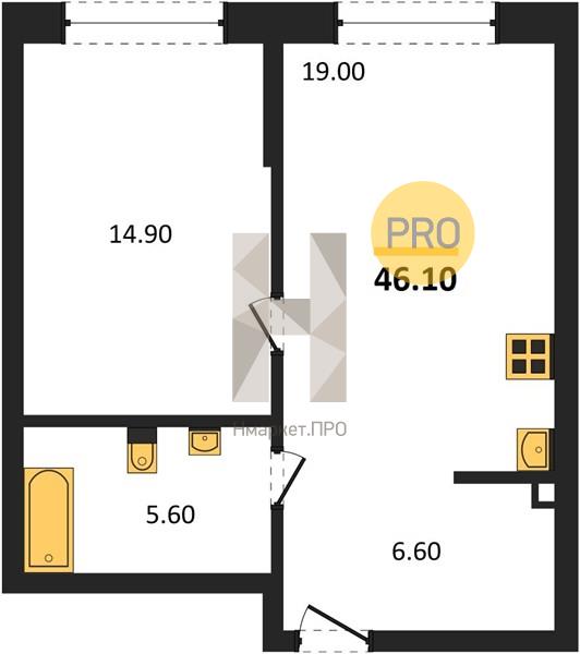 Квартира: 1 к 46,10 кв.м., 2 этаж в комплексе Ауро, 1 очередь, корп.3, сдача: 2кв. , этажей: 22, адрес Екатеринбург г., Шатурская ул., д. 4, Застройщик: ATLAS Development.