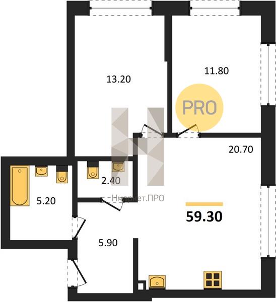 | Общая площадь: | 59.30 м2 |