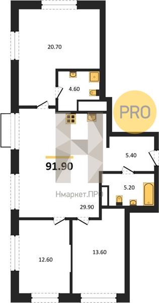 | Общая площадь: | 91.90 м2 |