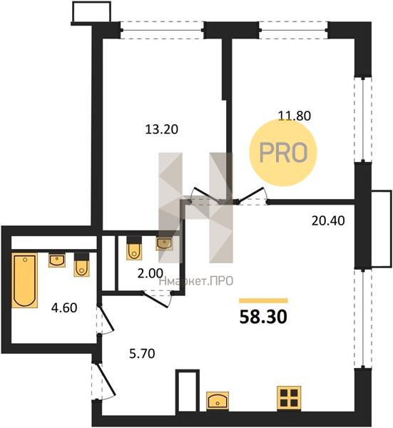 Квартира: 2 к 58,30 кв.м., 5 этаж в комплексе Ауро, 1 очередь, корп.3, сдача: 2кв. , этажей: 22, адрес Екатеринбург г., Шатурская ул., д. 4, Застройщик: ATLAS Development.