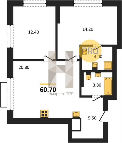 | Общая площадь: | 60.70 м2 |