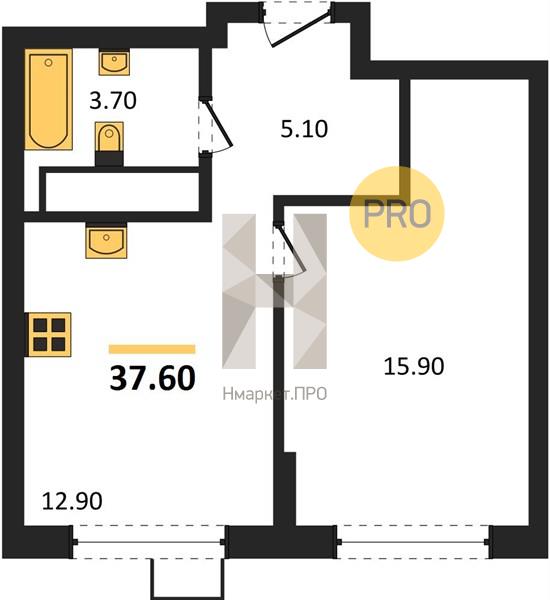 | Площадь кухни: | 12.90 м2 |