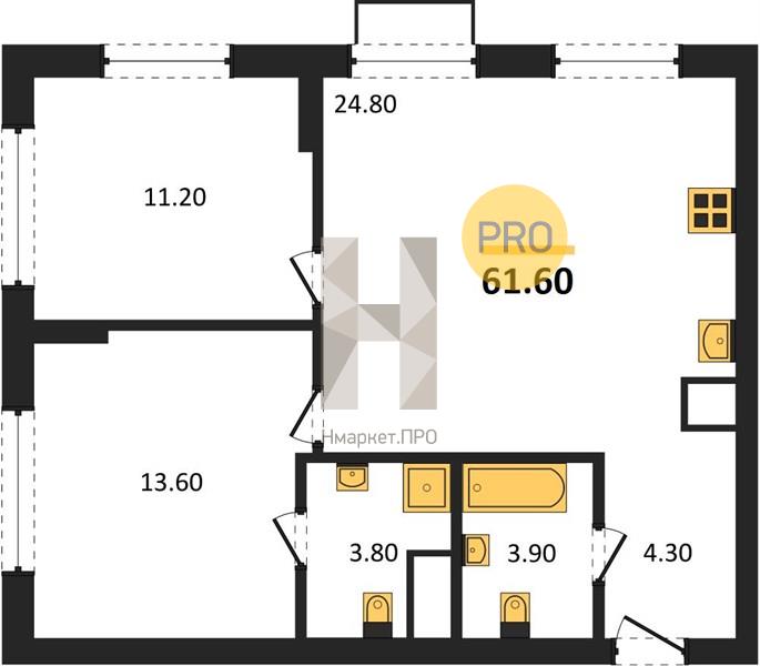 Квартира: 2 к 61,60 кв.м., 5 этаж в комплексе Ауро, 2 очередь, корп.С5, сдача: 3кв. , этажей: 32, адрес Екатеринбург г., Шатурская ул., , Застройщик: ATLAS Development.