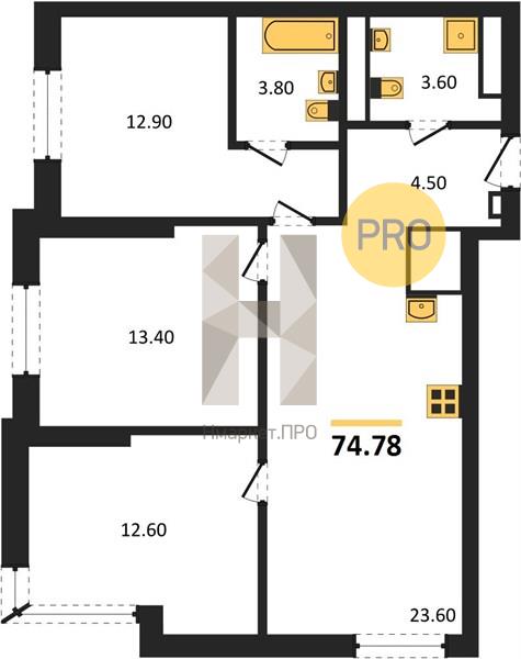 Квартира: 3 к 74,78 кв.м., 14 этаж в комплексе Дом "Милый Дом", 1 очередь, корп.2, сдача: 4кв. , этажей: 29, адрес Екатеринбург г., Шаумяна ул., , Застройщик: BAZA Development.