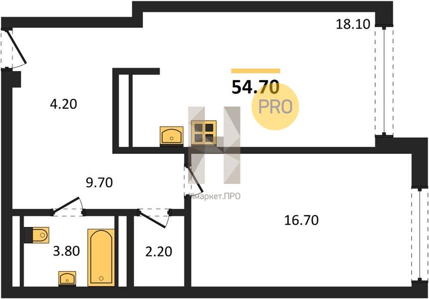Квартира: 1 к 54,70 кв.м., 20 этаж в комплексе Южные Кварталы, 4 очередь, корп.4 (5-9 подъезд), сдача: 3кв. , этажей: 24, адрес Екатеринбург г., Шаумяна ул., , Застройщик: Брусника.