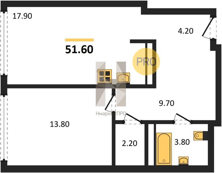Квартира: 1 к 51,60 кв.м., 23 этаж в комплексе Южные Кварталы, 4 очередь, корп.4 (5-9 подъезд), сдача: 3кв. , этажей: 24, адрес Екатеринбург г., Шаумяна ул., , Застройщик: Брусника.
