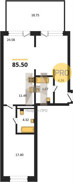 Квартира: 1 к 85,50 кв.м., 2 этаж в комплексе Южные Кварталы, 7 очередь, корп.11, сдача: 4кв. , этажей: 17, адрес Екатеринбург г., Шаумяна ул., д. 11, Застройщик: Брусника.