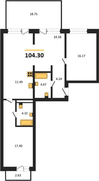 Квартира: 2 к 104,30 кв.м., 2 этаж в комплексе Южные Кварталы, 7 очередь, корп.11, сдача: 4кв. , этажей: 17, адрес Екатеринбург г., Шаумяна ул., д. 11, Застройщик: Брусника.