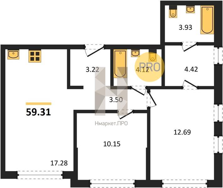 | Общая площадь: | 59.31 м2 |