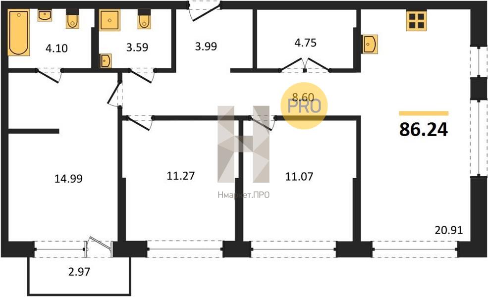 | Общая площадь: | 86.24 м2 |