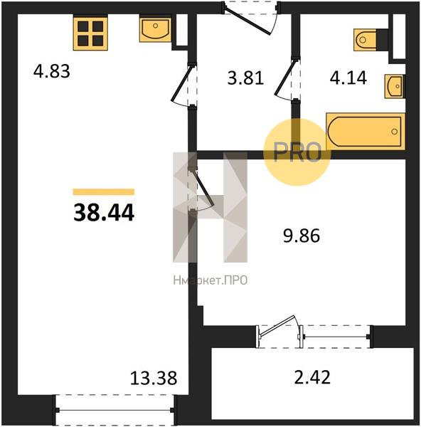 | Общая площадь: | 38.44 м2 |