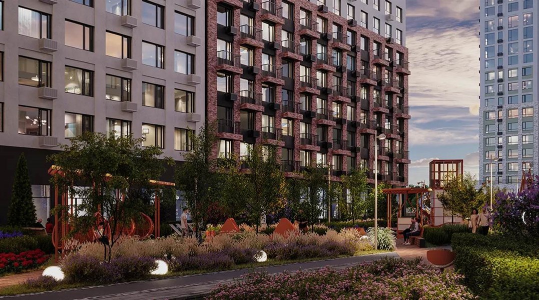На двух гектарах земли разместился камерный жилой комплекс, где всего два дома, приватные дворы и паркинг для жителей. Прямо под окнами квартир расположилось зеленое полотно городской гостиной. За пределами комплекса она плавно переходит в Эльмашевский парк. Переменная этажность создает комфортную для человека среду, без давления высотных зданий. У каждого дома свой приватный двор окружен «зеленью», которая будет цвести весь год. В теплое время распускаются деревья, кустарники, цветы и травы. Зимой глаз будут радовать пушистые ели. Одной из значимых особенностей проекта станет муниципальный детский сад на 100 мест.