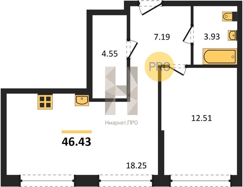 Квартира: 1 к 46,43 кв.м., 7 этаж в комплексе Страна.Энтузиастов, 1 очередь, корп." Энергия " секция 3, сдача: 4кв. , этажей: 13, адрес Екатеринбург г., Шефская ул., , Застройщик: Страна Девелопмент.